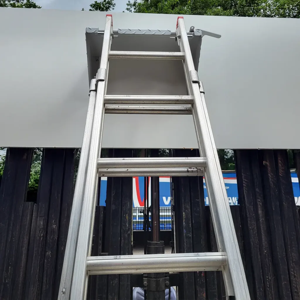 De DL80 en DL120 met ladder zijn prefabdakluiken die worden geleverd met een vaste of meerdelige aluminium ladder. Deze uitvoering is bijzonder geschikt voor hoge ruimten of technische zones waar een schaartrap niet toepasbaar is. De ladder wordt eenvoudig aan de voorgemonteerde aanhaaktrede bevestigd en is optioneel vergrendelbaar.